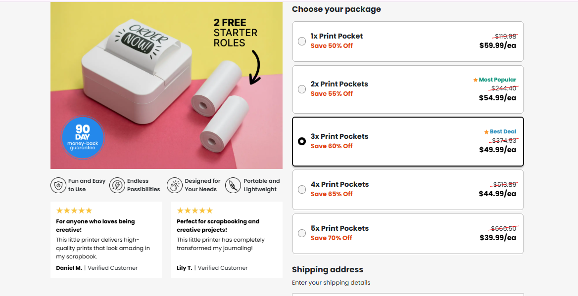 Since there is no ink, your only printing cost is thermal paper. This makes Print Pocket far more affordable than traditional printers in the long run.