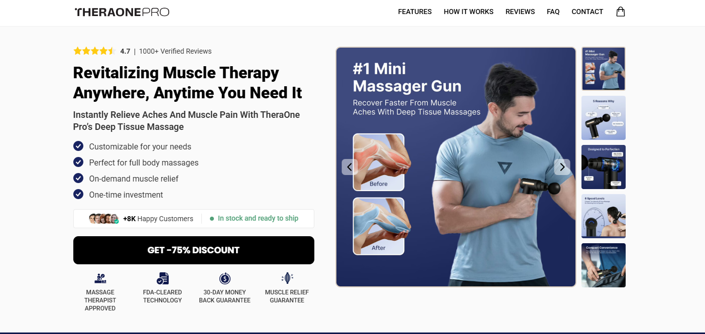 The TheraOne Pro Massage Gun can be purchased directly from the official website or through authorized online retailers. Buying from the official source ensures you receive a genuine product, full warranty coverage, and customer support.